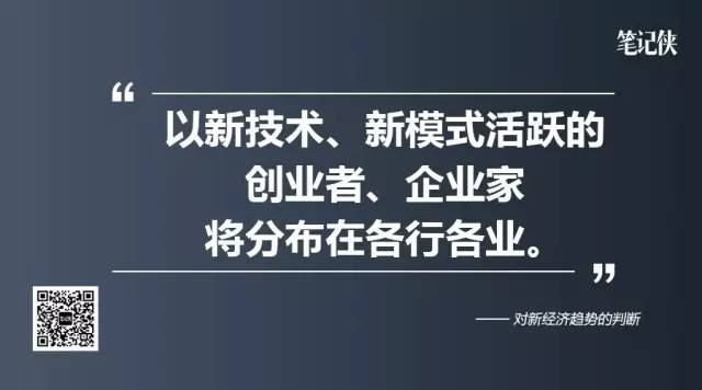 但前提是变革,我认为变革是非常难的,所以我对新经济的定义,是这两类企业家的总和,第一类企业家占未来新经济的70%,第二类占30%。未来,除了剩下的这两类企业,再没有第三类了。这个理念算是我的秘密,还没有跟很多人提起。