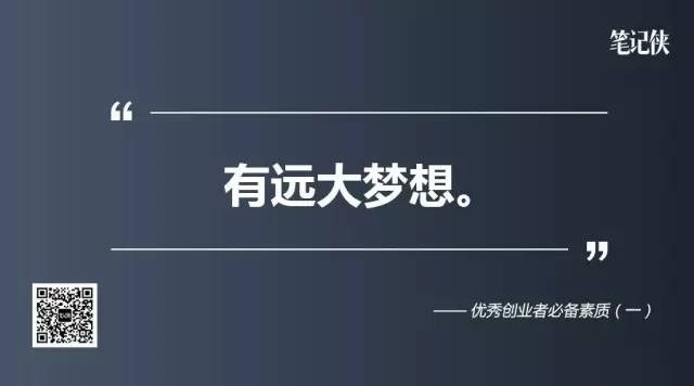 1.优秀的创业者必备的素质之一:有远大梦想。