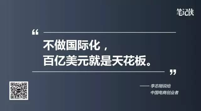 我跟几个新电商领域的创始人、CEO说过,如果你们不做国际化,我便不看好你们的未来。因为如果只在中国,不做国际化,百亿美元可能就是它们的天花板。