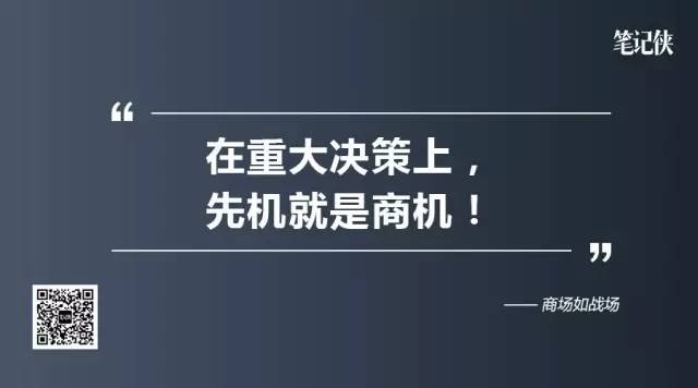 足可见一个创业者在重大战略上一定是独裁的。因为商场如战场,在重大决策上先机就是商机。