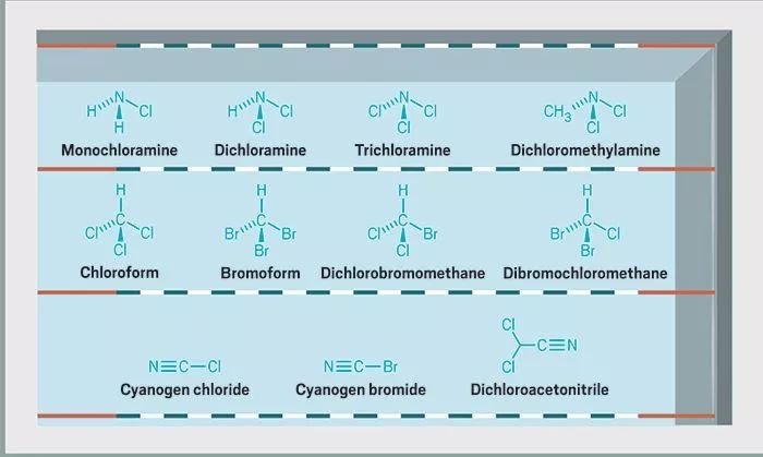 泳池中的11种挥发性副产物,其中三氯胺(Trichloramine)最具挥发性。