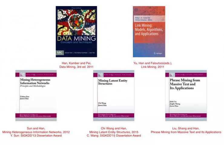 真实的数据到结构化数据,再到有用的知识,这仍然是一条很长的路。我们这么多年做 Data Mining 也是沿着这条路走的。从 2000 年我们出的第一本书(注:2011 年第三版),随后 Philip、Faloutsos 和我在 2010 年合著了《Link Mining》,再往后是孙怡舟做的《Mining Heterogeneous Information Network》;随后是王箎做的《Mining Latent Entity Structures》;最近呢,是刘佳硉、商静波他们把 Phrase mining 做了出来(《Phrase Mining From Massive Text and Its Application》)。这些以后都会成为书。我们接下来有任翔他们,还会接着往下走。