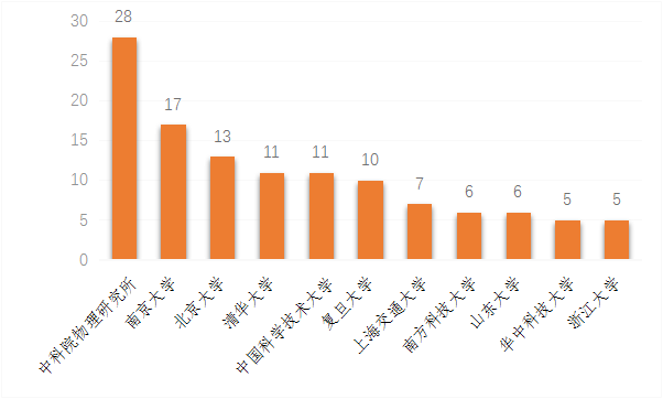 图表 2:全国物理学学学科高被引学者分布机构(TOP 10)