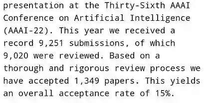 AAAI2022官方今日发布接收论文列表,9251篇论文提交有1349篇论文接受,接受率15%!