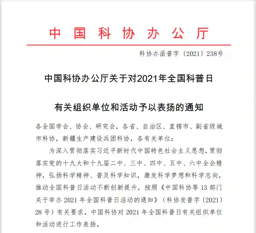 【喜讯】学会四项科普活动获评中国科协2021年全国科普日优秀活动