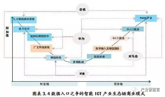 (3)平台经济圈:在这种模式下,厂商通过提供一个平台,可以导致或促成双方或多方客户在平台上展开交易。客户越多则边际成本越低,收益越大。]圈:制造链的核心价值在于知识产权的先入优势和资源垄断优势,服务链的核心价值在于谁真正拥有平台资源(包含用户资源、带宽资源、内容资源、数据资源、商业信息、网络关系群体和在线服务资源等),格局高度垄断导致新进入者极难进入,存在垄断利润。全球著名公司,如亚马逊、谷歌、苹果、英伟达、阿里巴巴、腾讯等均归属于平台经济圈的范畴。