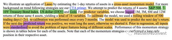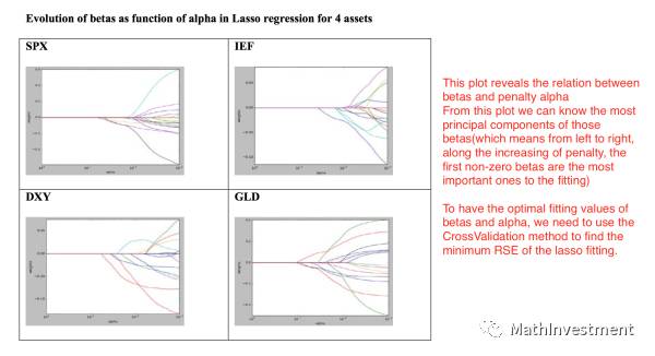 但这里是仅仅用了(X1, X2, X3, X4)作为变量,但实际上我们有4个不同的asset Y,S&P 500,10-year UST,US dollar(DXY),还有黄金gold, 所以可以将这4个Y的(X1, X2, X3, X4)都设置成共用的16个变量(X1, X2, X3, X4,…X16)。然后用这同一套Xi对这四种asset进行regression,每一种asset就都有一个Lasso model进行预测。