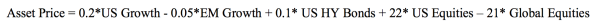 这里的US growth,EM growth,US HY Bonds,US Equities,Global Equities是五个变量Xi,想要预测的Y就是Asset Price。
