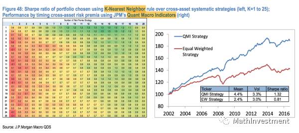 左边的图的列向量是选择K从0到25,横向量是选择risk premia的个数。方框中的数值就是sharp ratio。从这张图看来,确实是需要对所有的组合进行回测。但这里每一行似乎仅仅区分了risk premia的个数,而不是每一个单独不一样的risk premia? (想要弄清楚,可能需要看看JPM的risk premia是怎么构建的了,应该都是independent,所以并不能单纯以个数来作为loop的条件?)