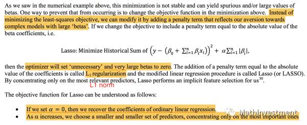 Lasso做的事情就是加入一个penalty因子,使得自动将相关性不强的因子自动筛选掉,也就是使得其前面的系数变为0。