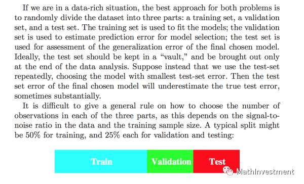 我们用统计方法的一般流程是,首先我们将的dataset分成两部分,一部分是training sample,是用来确定(train) model的;另一部分是test sample(或者validation sample),是用来看这个model效果的。
