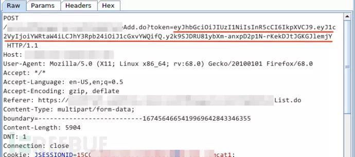 这个 token 让我觉得很突兀,通常 token 要么用作身份凭证、要么用于防 CSRF,若是前者,就不应该与同样表示身份凭证的 cookie 同时存在,若是后者,通常为 16 位或 32 位的哈希值,而非用点号分隔的三段 base64。于是,我依次将每段解码: