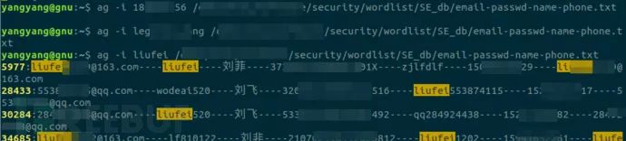 社工库。提取邮箱中的用户名,liufei 的 liufei、nana 的 18xxxxxx56、admin 的 legxxxxxxng,在社工库中查询历史密码: