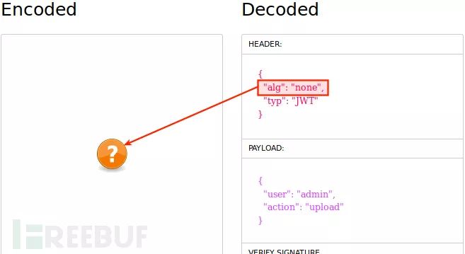 禁用哈希。JWT 第一部分含有 alg 字段,该字段指定生成签名采用哪种哈希算法,该站使用的是 HS256,可将该字段篡改为none,某些 JWT 的实现,一旦发现 alg 为 none,将不再生成哈希签名,自然不存在校验签名一说。