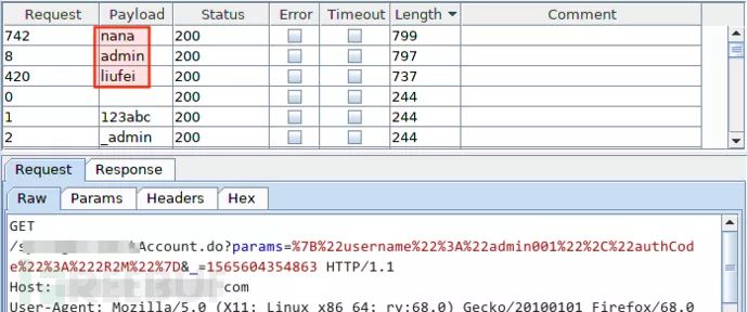 显然,用户名在该请求的 params 参数中,URL 解码可得明文: