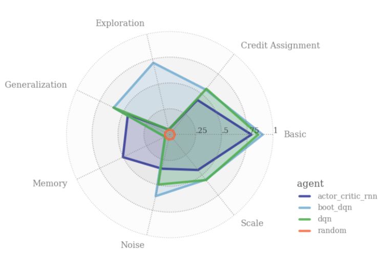 我们试图将 bsuite(Behaviour Suite for Reinforcement Learning,强化学习行为套件)打造成为强化学习领域 的 MNIST。