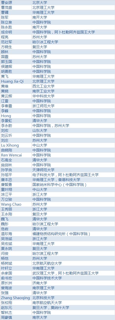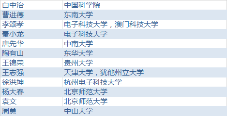 中国内地高校中,清华大学、北京大学、浙江大学、电子科技大学、苏州大学、复旦大学、中国科学技术大学和上海交通大学表现突出,均有超过 10 人次的学者入榜。