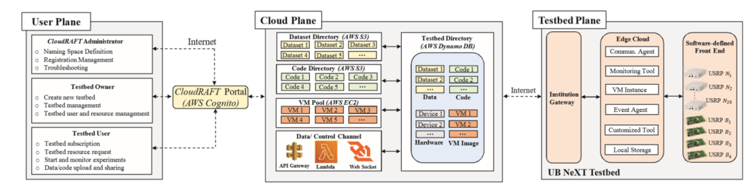 CloudRAFT。在这个项目中,我们探索新的技术,可以为移动网络实现开放的远程实验。我们首先提出了一个名为CloudRAFT的基于云的框架,在此基础上,允许实验者通过公共云Amazon Web Services(AWS)远程访问和控制实验资源,并通过云分享所产生的数据和代码。然后,我们讨论了CloudRAFT的启用技术,包括亚马逊无服务器服务、基于虚拟网络计算(VNC)的远程命令行和基于Websocket的实时通信等。最后,我们展示了这些技术在实现远程访问UB NeXT方面的应用,UB NeXT是水牛城大学为无线移动网络建模、优化和部署而开发的一个软件定义的测试平台。这项工作验证了通过远程公共云访问、控制和共享无线测试平台的可行性。