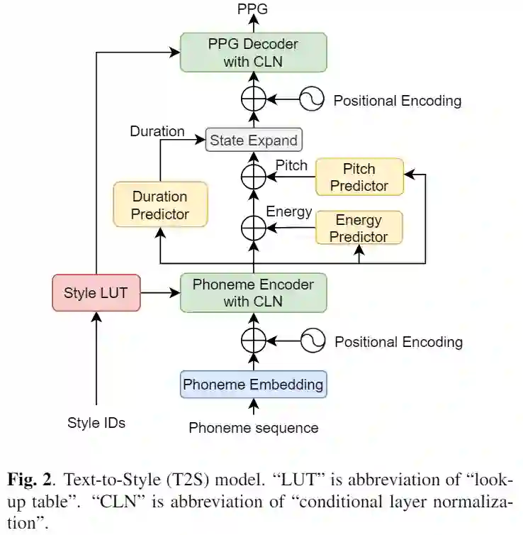 本文提出了Referee系统,这是一种用于表达性 TTS 的强大的无参考 CSST 方法,可充分利用低质量数据从文本中学习说话风格。裁判是通过将文本到样式 (T2S) 模型与样式到波浪 (S2W) 模型级联构建的。作者将语音后验图(PPG)、音素级音高和能量曲线作为细粒度的说话风格描述子,使用 T2S 模型从文本中预测这些描述子。
