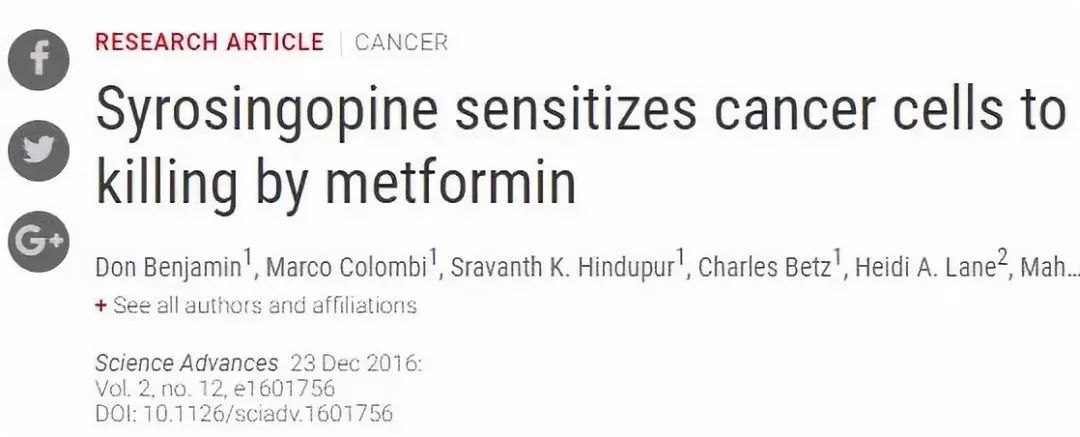 两年前,发表在《Science Advances》上的一项研究中,瑞士巴塞尔大学生物中心的研究人员发现,二甲双胍与一种降血压药物结合可以阻止肿瘤生长。