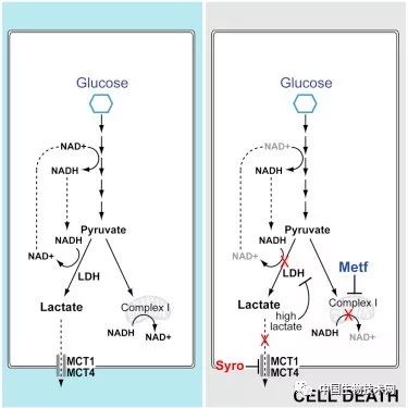 很多癌细胞在其新陈代谢中依赖于糖酵解,这意味着它们会将糖分解成乳酸。然而,如果乳酸过多时,糖酵解通路就会被阻断。