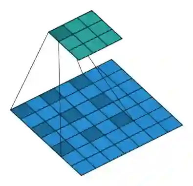 一个扩张率为2的3×3卷积核,感受野与5×5的卷积核相同,而且仅需要9个参数。你可以把它想象成一个5×5的卷积核,每隔一行或一列删除一行或一列。
