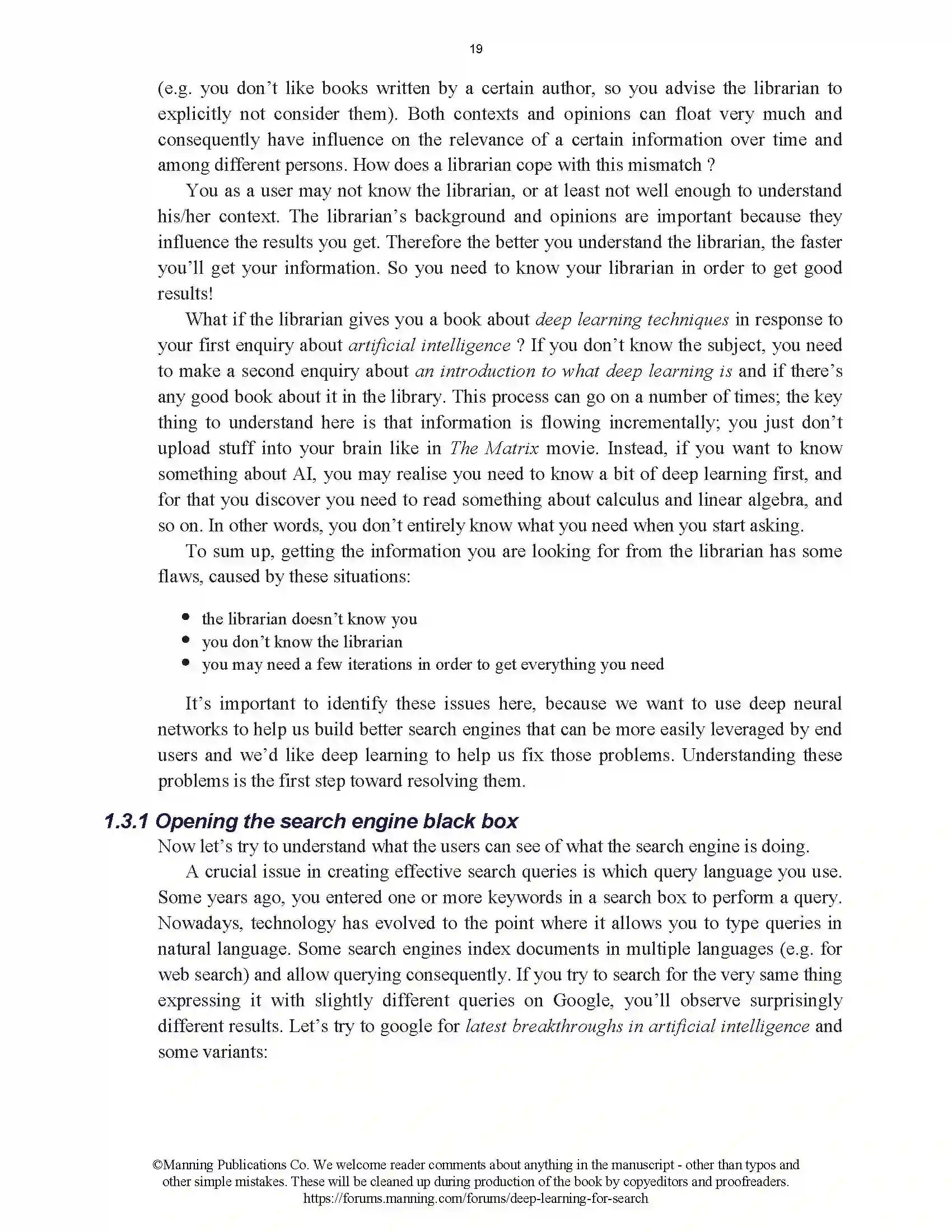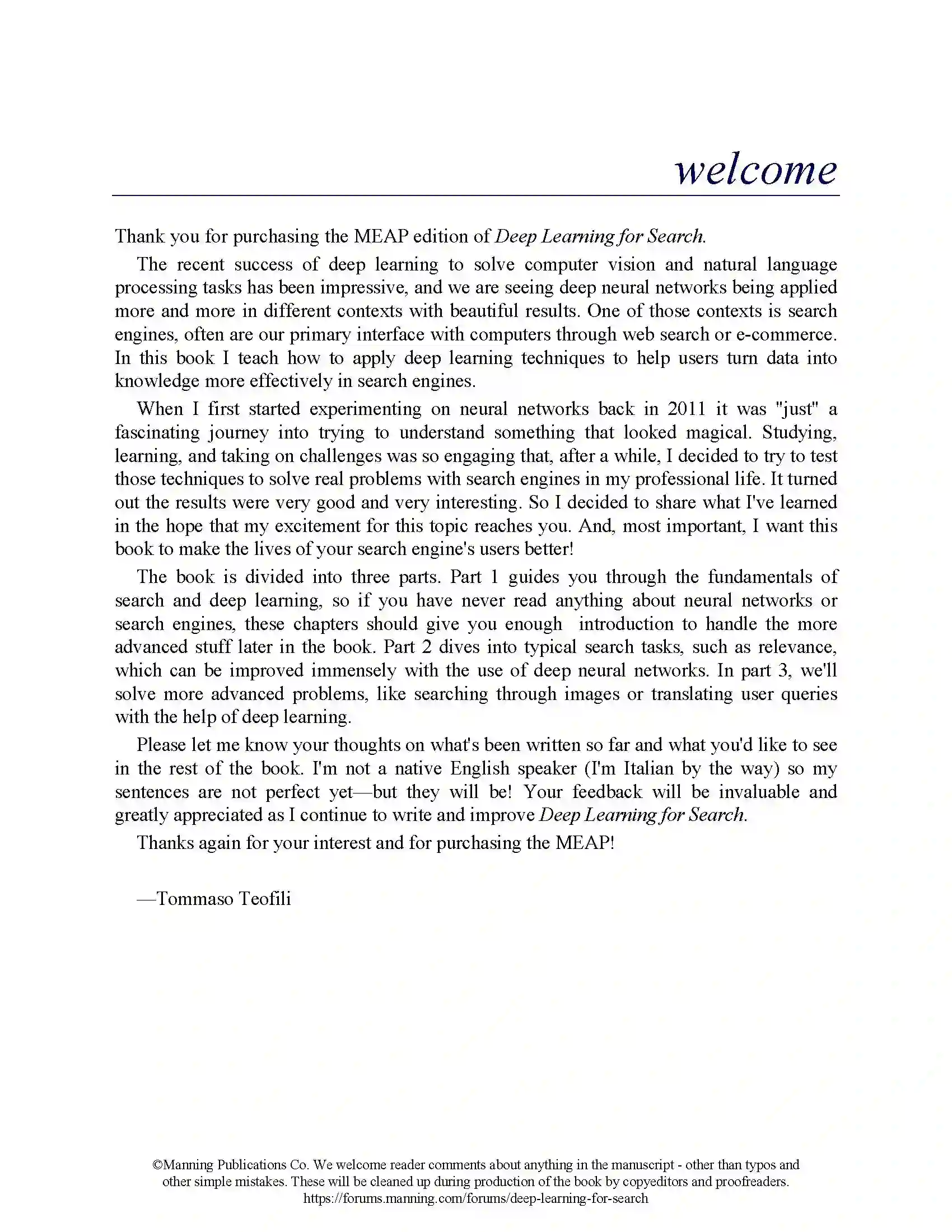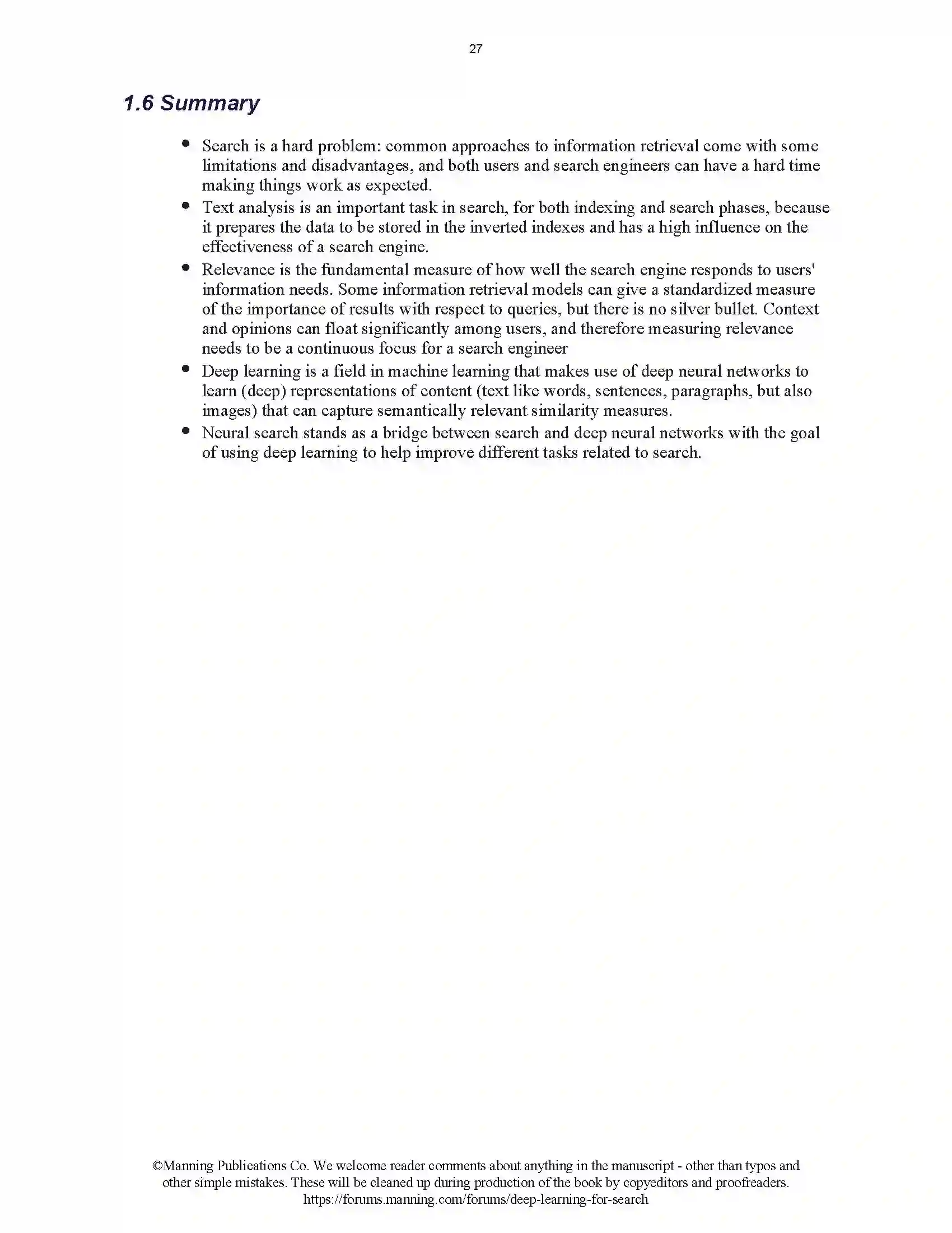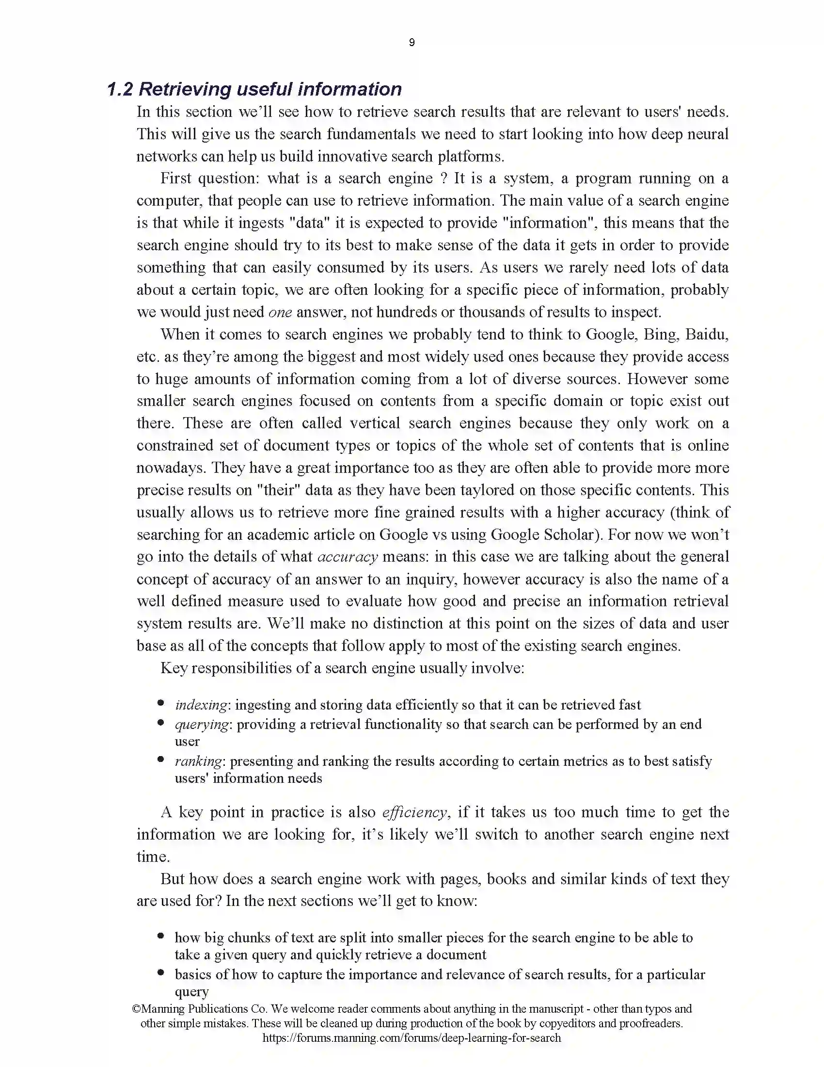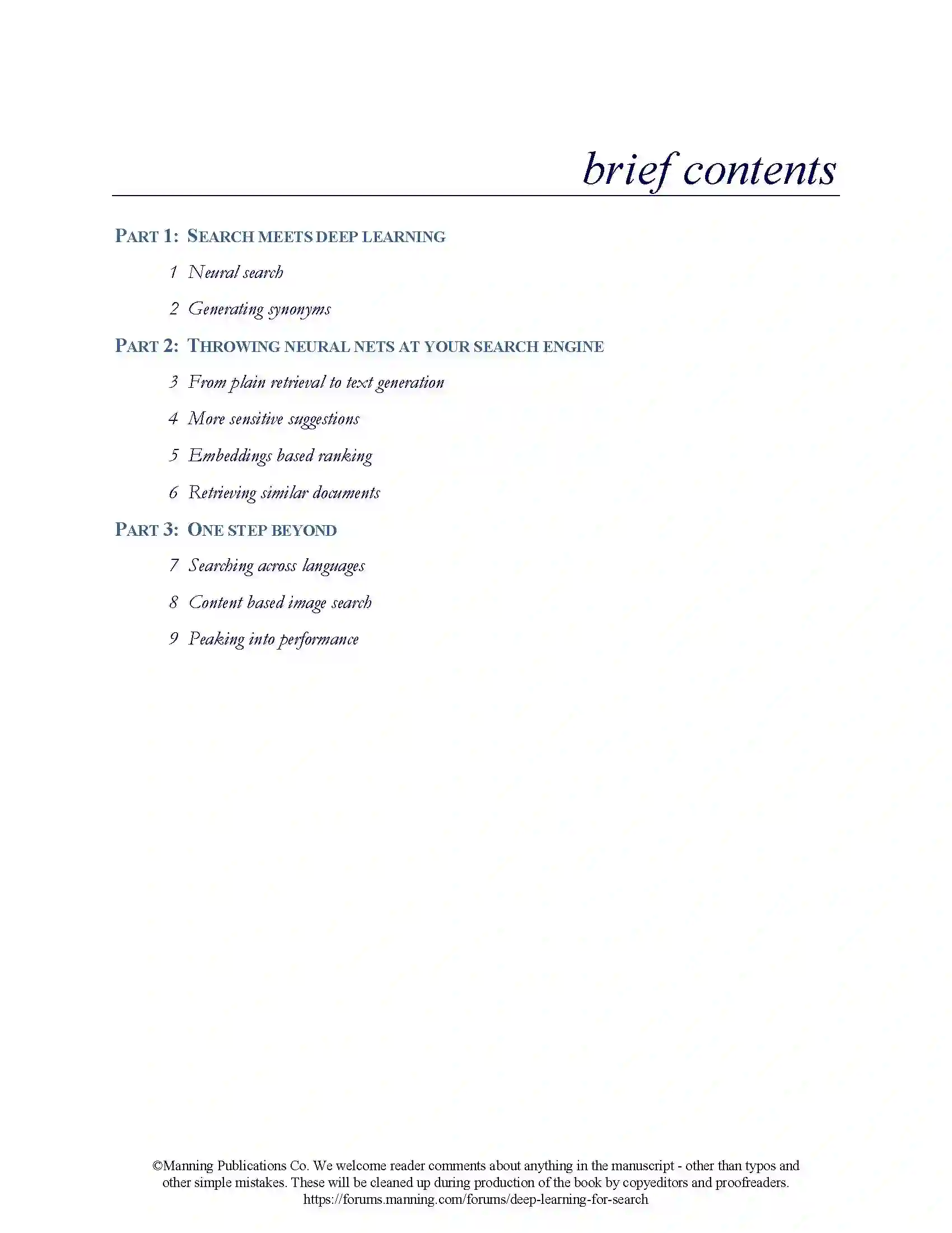 本书包含了一些高级问题,比如图片搜索等。当你完成这些的时候,你将可以构建一个效果不错的搜索引擎,提供用户需要的结果,这些搜索结果并随着时间的推移变得更好!