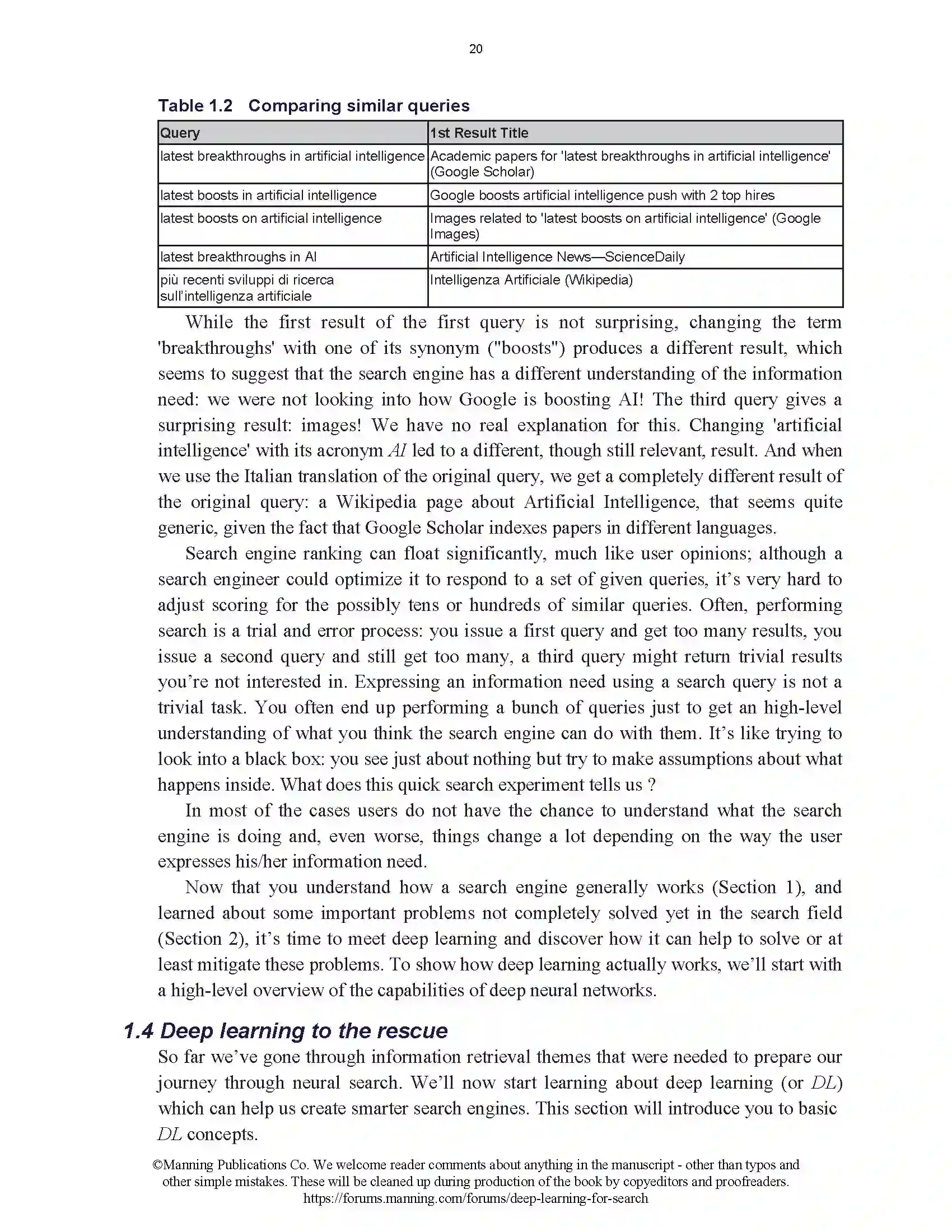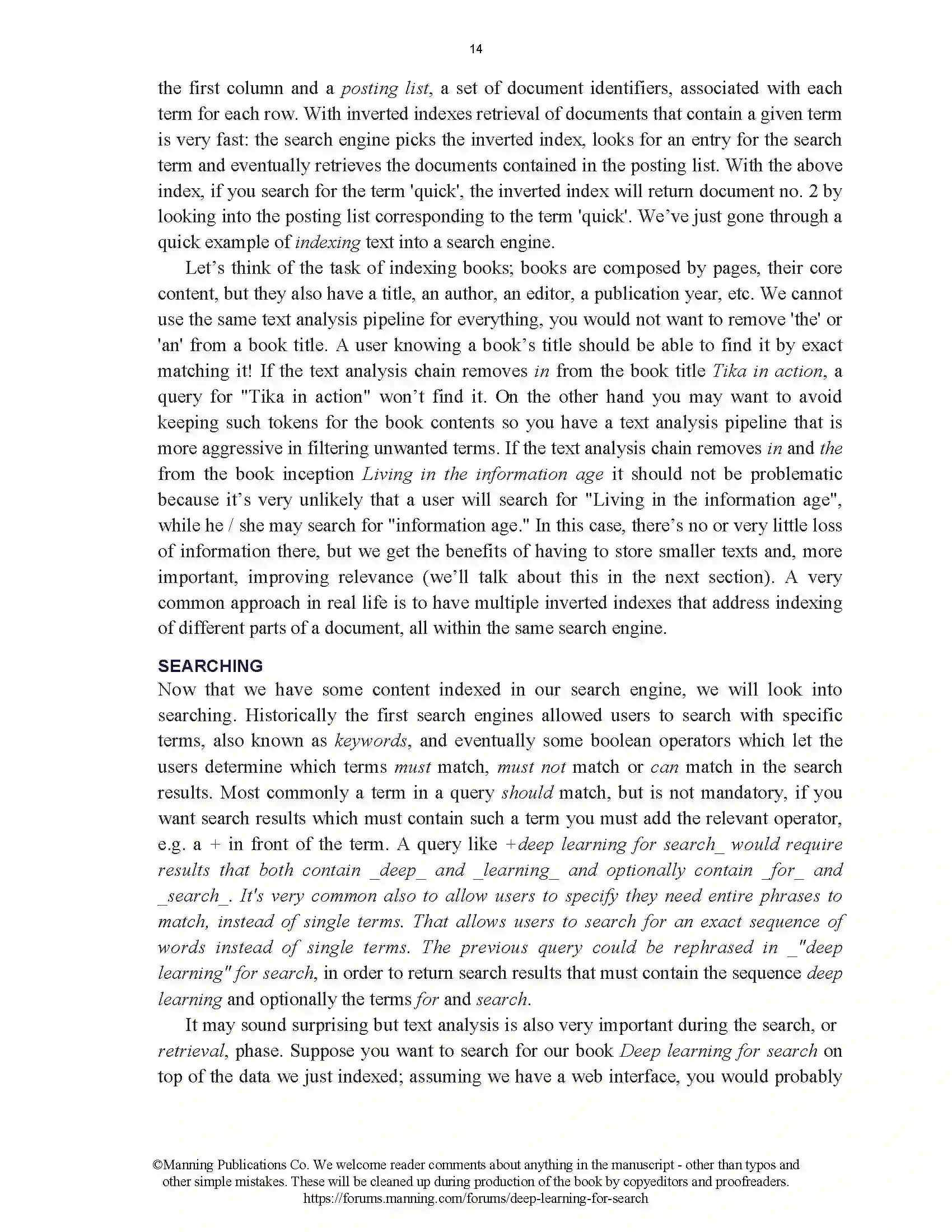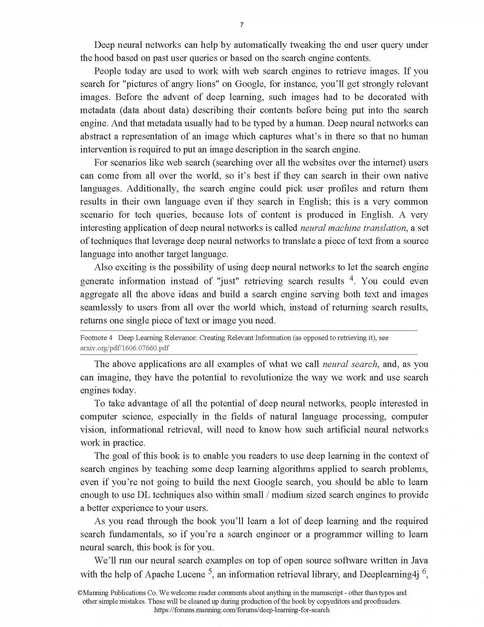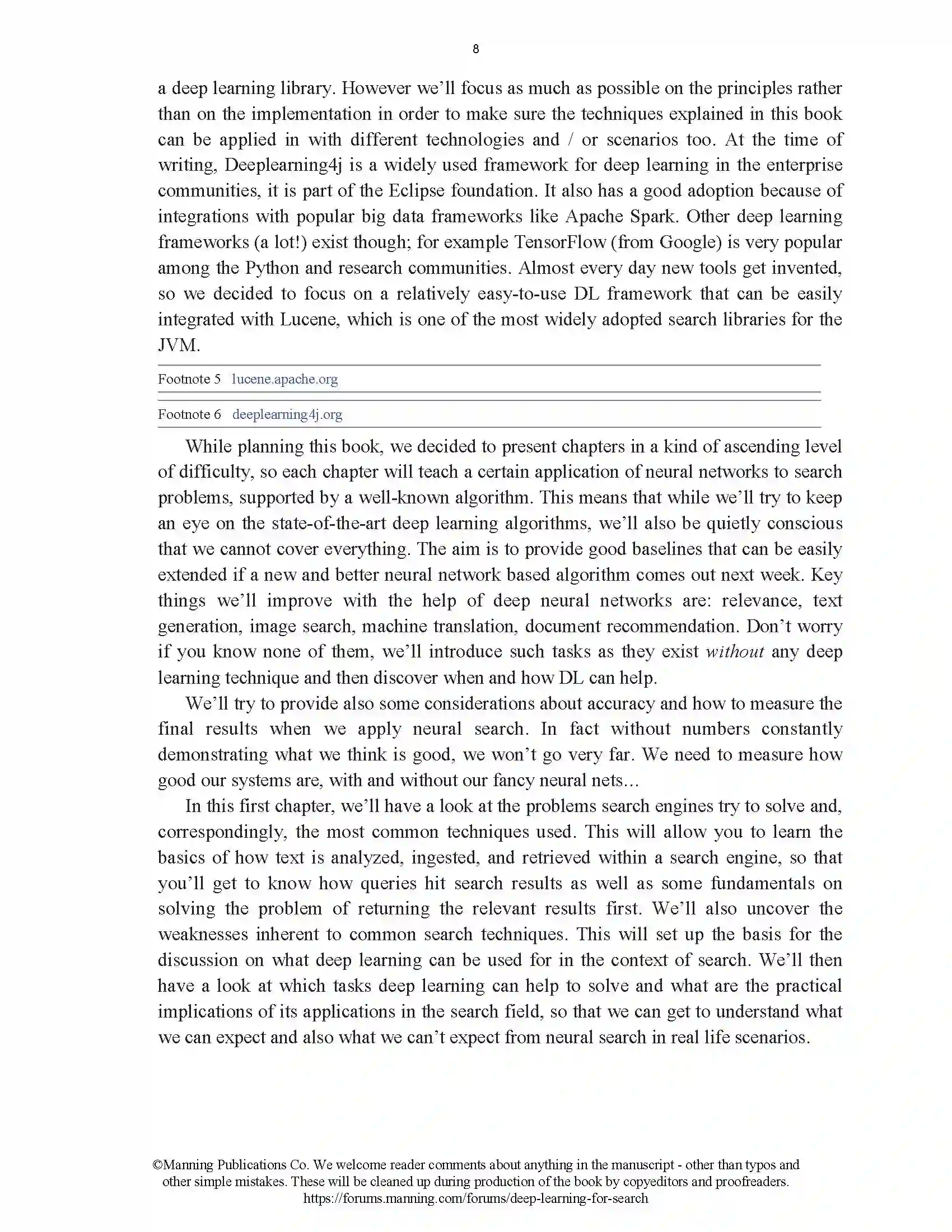 【导读】 信息检索资深专家Tommaso Teofili最新撰写的面向搜索的深度学习实战书籍(预计2018年夏季出版)《Deep Learning for Search》介绍使用Apache Lucene和DeepLearning4j实现基于深度学习的搜索引擎框架。Deep Learning for Search教您如何通过实施基于神经网络的技术来提高搜索的有效性。在这本书中,首先为你概括信息检索原则,如索引,搜索和排序,以及深度学习的快速介绍。然后,通过Apache Lucene和DeepLearning4j的帮助,您将深入了解如何改进典型搜索任务(如相关性)。这本书面向Java从业人员,无需NLP和深度学习知识,只需要按照书中教程来,就能初步构建一个基于深度学习的搜索引擎。随书同时提供代码,可以让你动手测试改进。