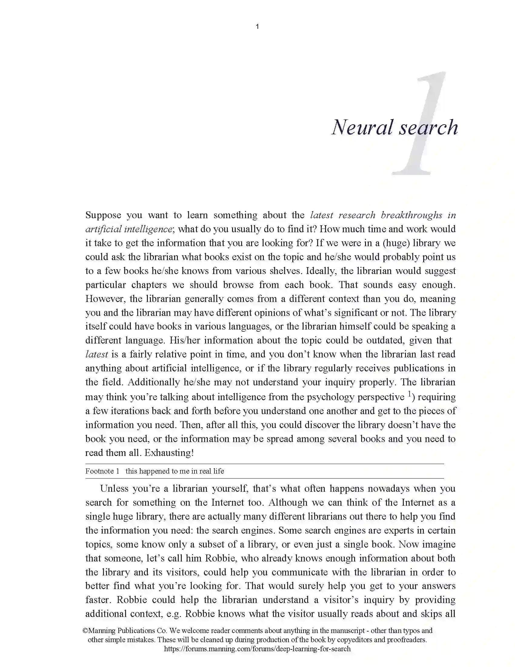 Deep Search for Search教您如何通过实施基于神经网络的技术来提高搜索的有效性。在这本书中,首先为你概括信息检索原则,如索引,搜索和排序,以及深度学习的快速介绍。然后,通过Apache Lucene和DeepLearning4j的帮助,您将深入了解如何改进典型搜索任务(如相关性)。