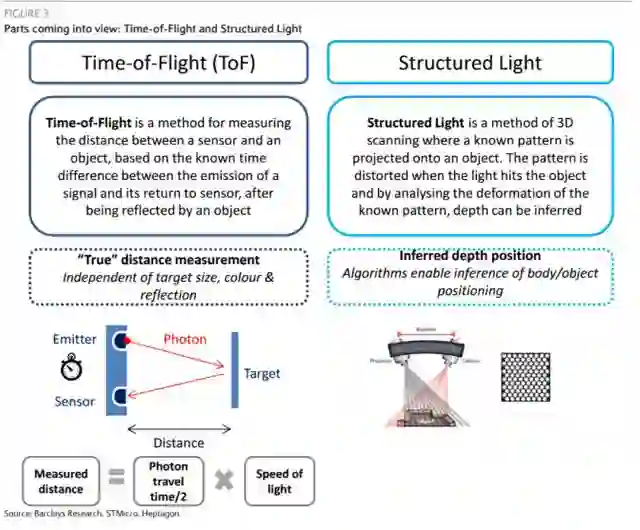 在上述图中,我们能看到,ToF 关键是传感器要测量物体的距离。