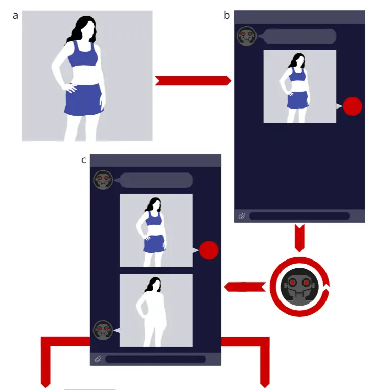 用户向机器人发送了一张他们想看的女性照片,该机器人就会使用Deepfake技术生成一张该女性的假果照。