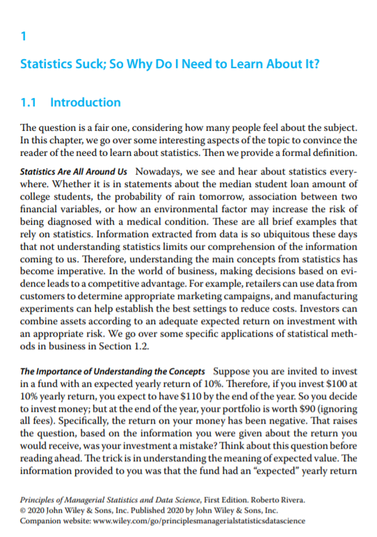 管理统计和数据科学的原理包括:数据可视化;描述性措施;概率;概率分布;数学期望;置信区间;和假设检验。方差分析;简单线性回归;多元线性回归也包括在内。另外,本书还提供了列联表、卡方检验、非参数方法和时间序列方法。