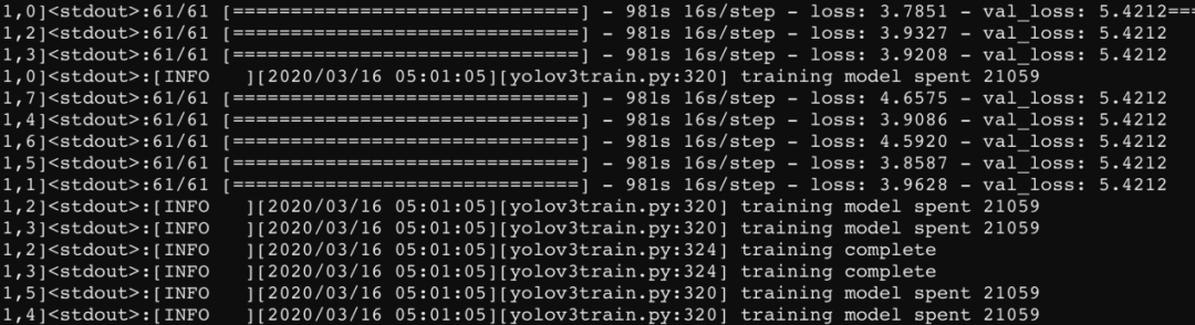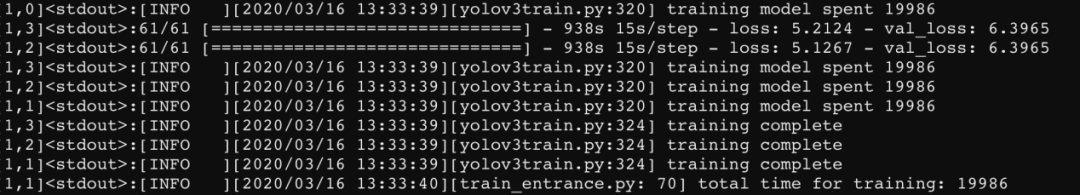 horovodrun -np 6 -H localhost:2,9.16.113.24:2,9.16.113.25:2 python train.py