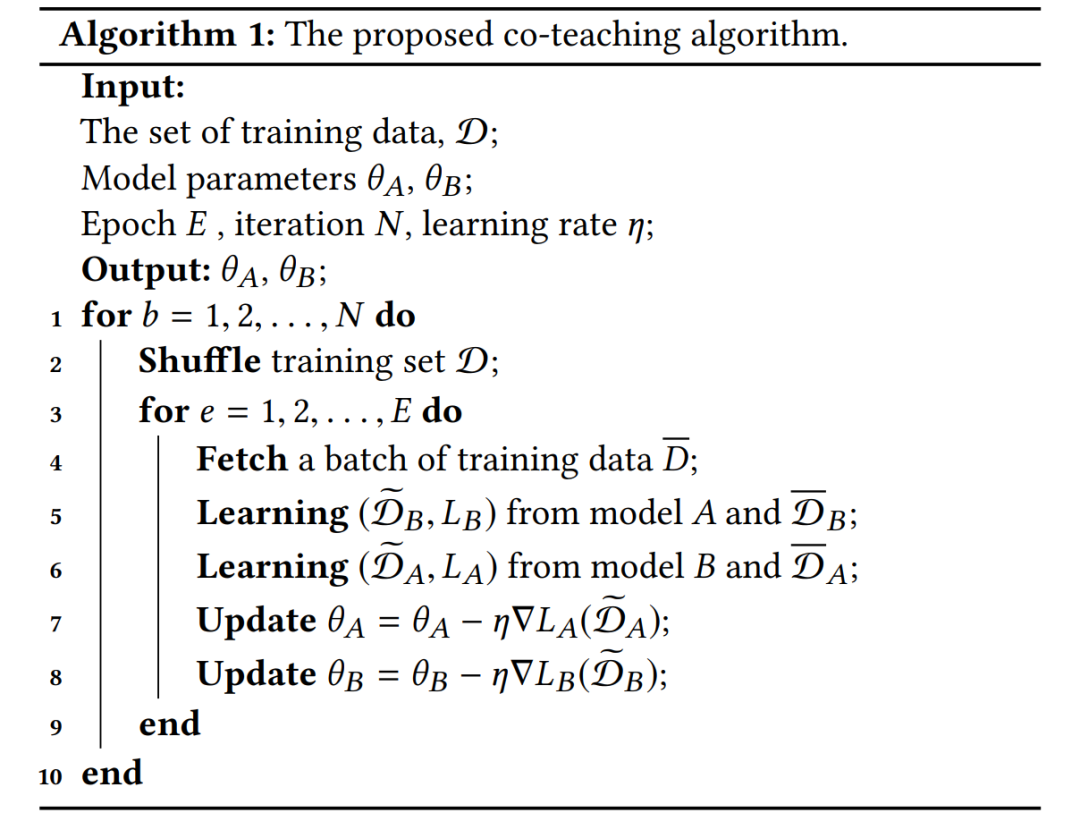 另一方面,我们采用了一种协作学习的机制来减少噪声数据对训练的影响。核心思想是