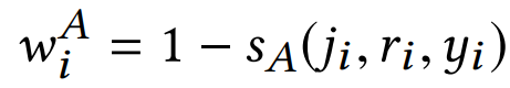让其对等模型A为这个K个实例分配权重。其核心想法是根据样本真实标签信息与A的预测之间的一致程度对实例赋予权重: