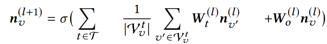 的邻接节点集合。由于每一种关系t对应一个特定的参数矩阵