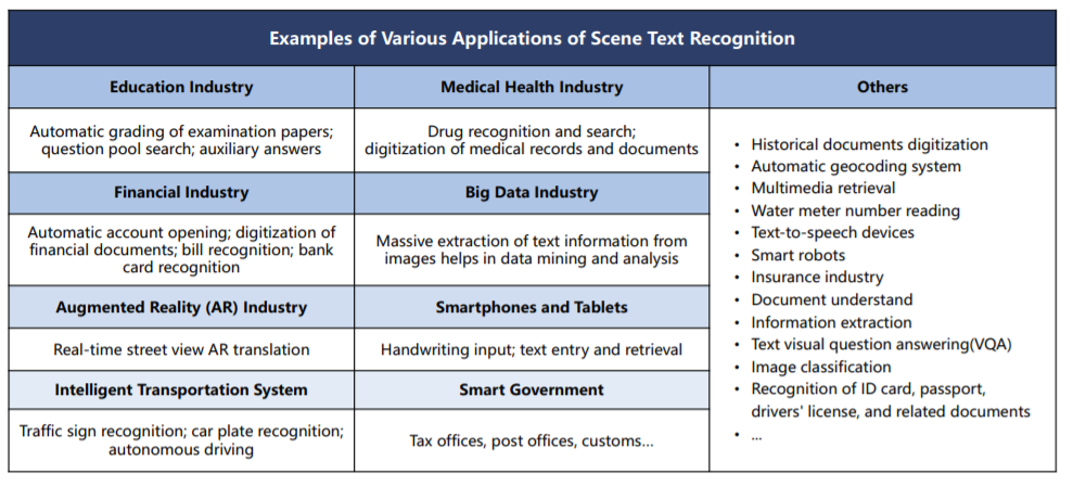 • 形式: 扫描文件的文本通常以单一颜色打印,字体规则,大小一致,排列整齐。在自然场景中,文本以多种颜色出现,字体不规则,大小不一,方向各异。文本的多样性使得STR在扫描文档中比OCR更加困难和具有挑战性。