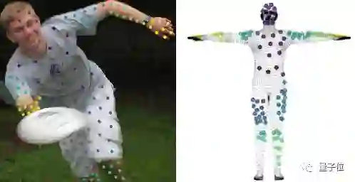 训练好之后,AI可以把每一个像素,分配到不同的身体部位,给出U坐标和V坐标。