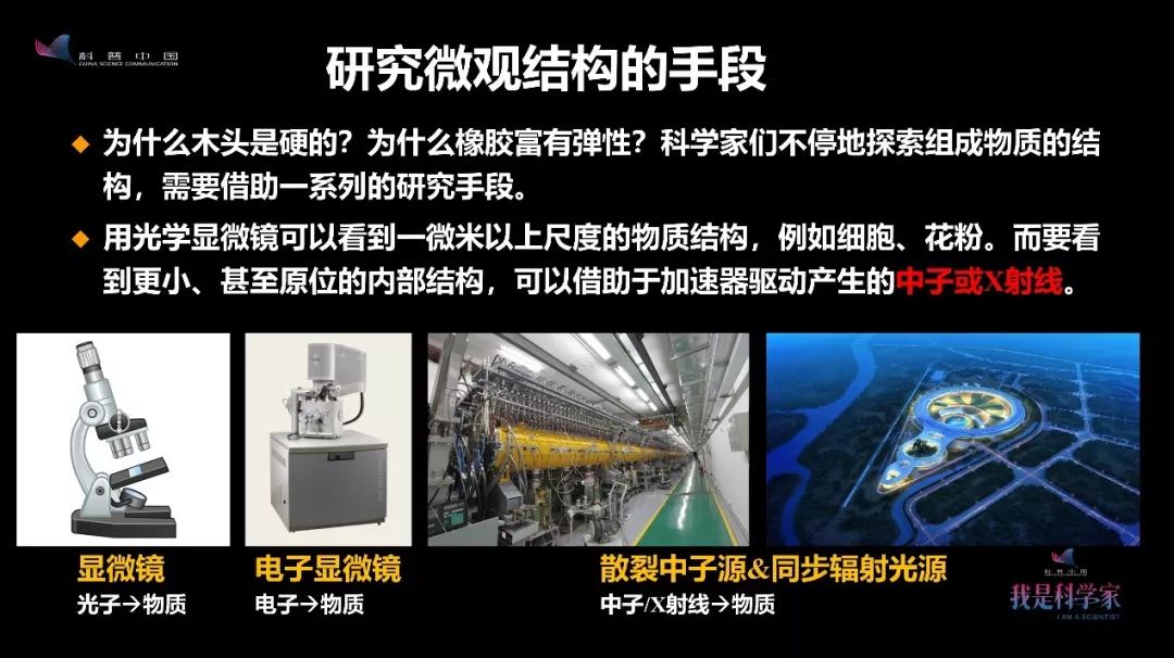 科学家们不停探索物质微观结构,需要借助一系列的手段,显微镜就是其中一种。光学显微镜可以看到1μm以上尺度的物质结构,比如细胞、花粉;但要看到更小层次的内部结构,就要借助于加速器驱动产生的中子或者X射线。