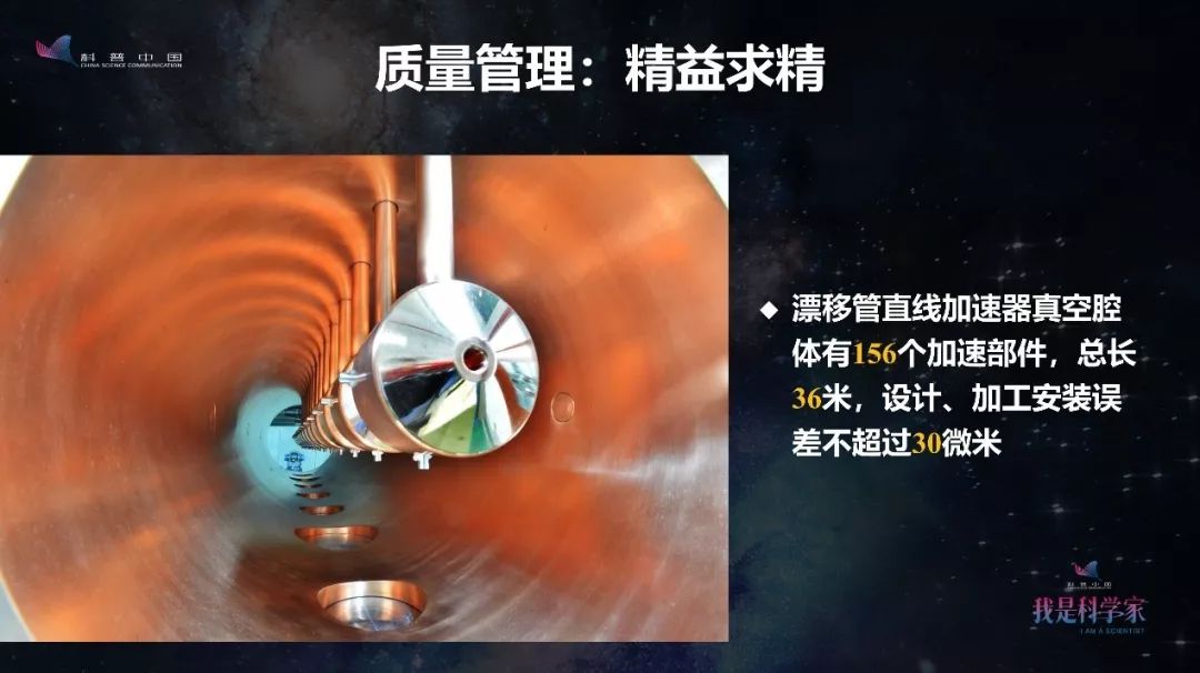 举个例子,我们直线漂移管加速器的真空腔体有156个加速部件,总长36米,设计、加工和安装的误差不超过30μm,这么严格的指标是建设者们反反复复精益求精实现的。