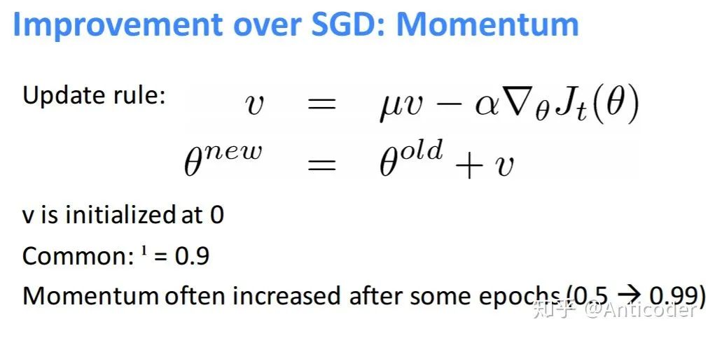 mini-batch好处主要有:可以用矩阵计算加速并行;引入的随机性可以避免困在局部最优值;并行化计算多个梯度等。在此基础上一些改进也是很有效的(因为SGD真的敏感),比如Momentum,他的意图就是在原先的跟新基础上增加一点摩擦力,有点向加速度对速度的作用,如果多次更新梯度都往一个方向,说明这个方向是对的,这时候增加跟新的步长,突然有一个方向,只会较少影响原来的方向,因为可以较少的数据带来的误差。当你使用momentum时可以适当减小global learning rate