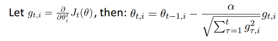 简要说明一下,Adagrad非常适合数据出现频度不一样的模型,比如word2vec,你肯定希望出现非常少的词语权重更新非常大,让它们远离常规词,学习到向量空间中距离度量的意义,出现非常多的词(the,very,often)每次更新比较小。