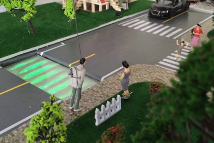 和上文提到的智能人行道相似,他们设想在人行道上面铺设自带太阳能供电的 LED 显示灯,当行人通过人行道时,智能系统能通过摄像头监控道路状况和行人动态。如果有车辆快速驶近人行道,无论是绿灯还是红灯,在人行道上都会出现显示灯颜色变化,提醒行人注意潜在危险。