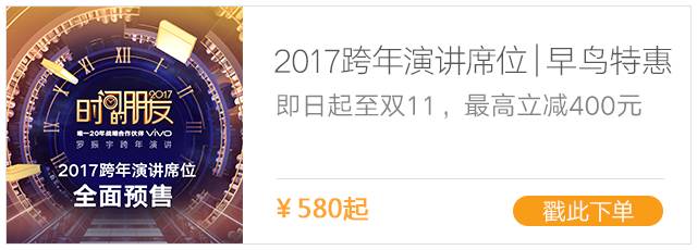今天,2017跨年演讲各档门票,全面预售。