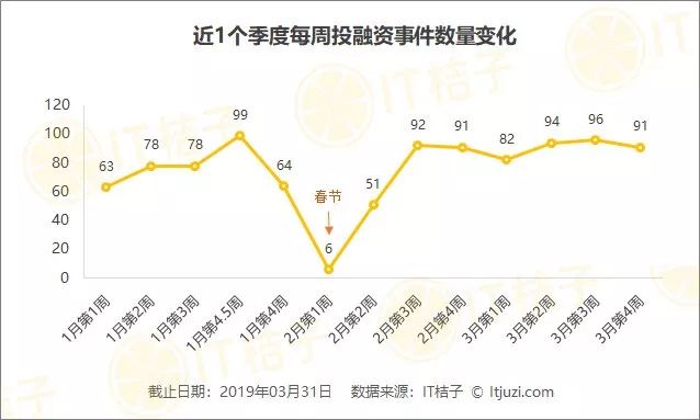 上周,创投圈共计发生 91 起投融资并购事件,较上周发生的 96 起投融资事件数量相差无几,继 2019 春节后投融资热度从低点恢复平稳状态。