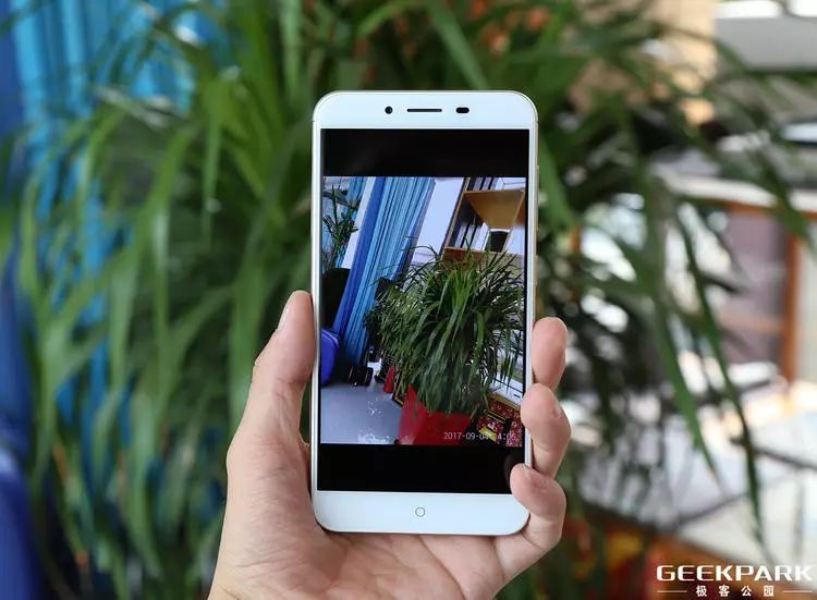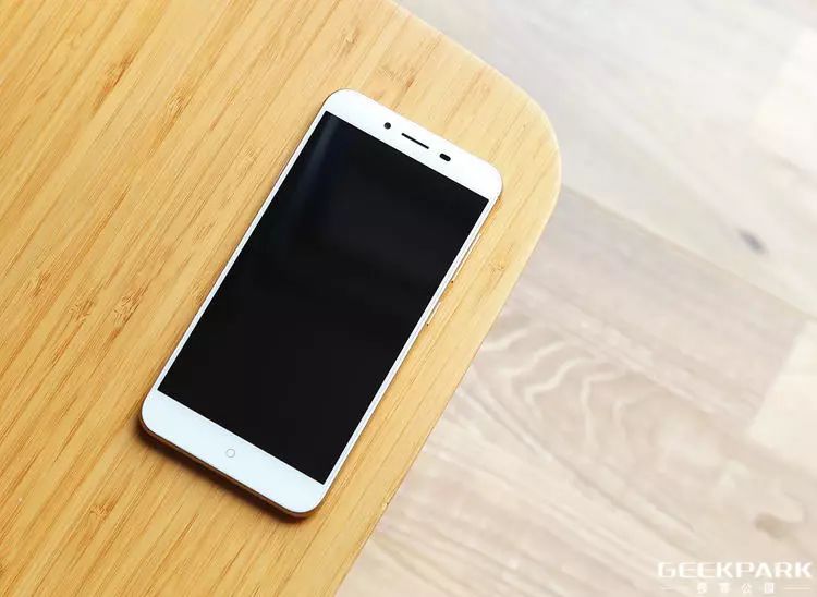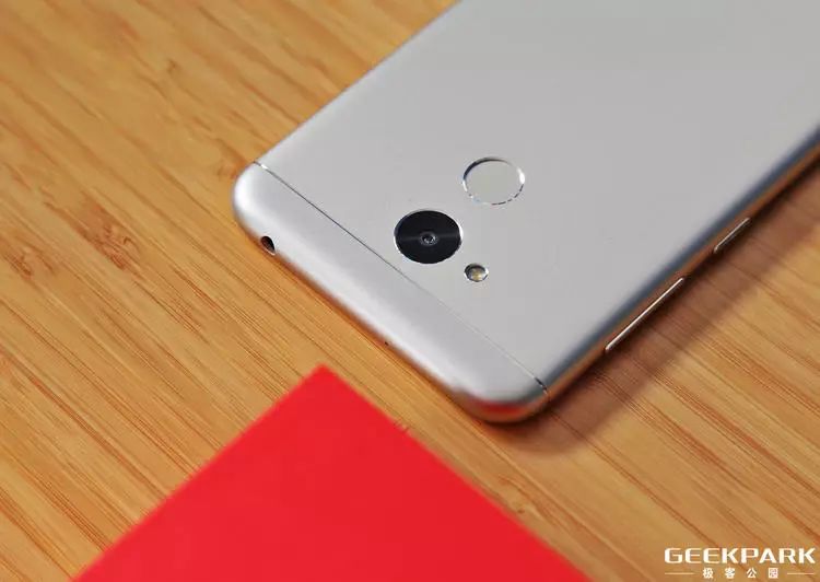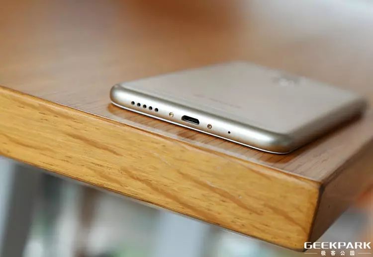 出于对成本的考量,后盖部分的处理,360 vizza 同样采用了目前千元机常见的「中间金属+两头塑料」的三段式设计。不过就直观视觉而言,阳光金版本机身背部的整体色差并不明显。