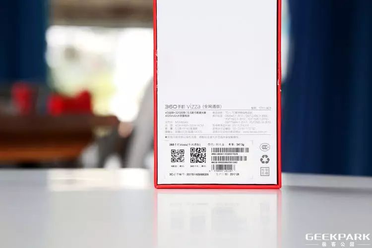 和之前的 N5 以及 N5s 一样,360 vizza 旧延续了红色的外包装盒设计。在其背面可以看到一些相关的硬件配置参数,以及相应的版本型号。