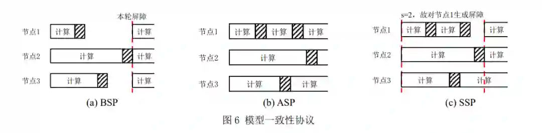 在大规模分布式机器学习训练场景中,计算 节点间需要频繁地进行参数同步,因此,参数同 步模式对整体训练性能具有重要的影响。本节将 从模型一致性协议和参数同步架构这两个方面详 细介绍对参数同步模式进行优化的相关工作。
