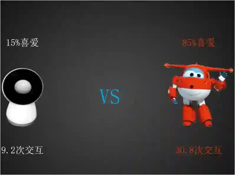 现在,我们做了两款机器人,白色的这款是美国创业公司从MIT做的,红色是(奥菲)跟图灵合作的机器人。从数据上明显的看到,用户跟它的交互次数,以及对它的购买欲望购买量,完全是两个数量级。这就是交互带来的不同。