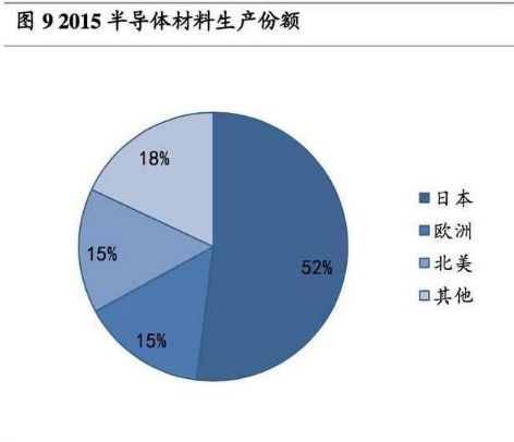 19种生产半导体的必须材料里,日本企业在硅晶圆、光罩、光刻胶、药业、靶材料、保护涂膜、引线架、 陶瓷板、塑料板、TAB、COF、焊线、封装材料等 14种重要材料占有 50%及以上的份额。